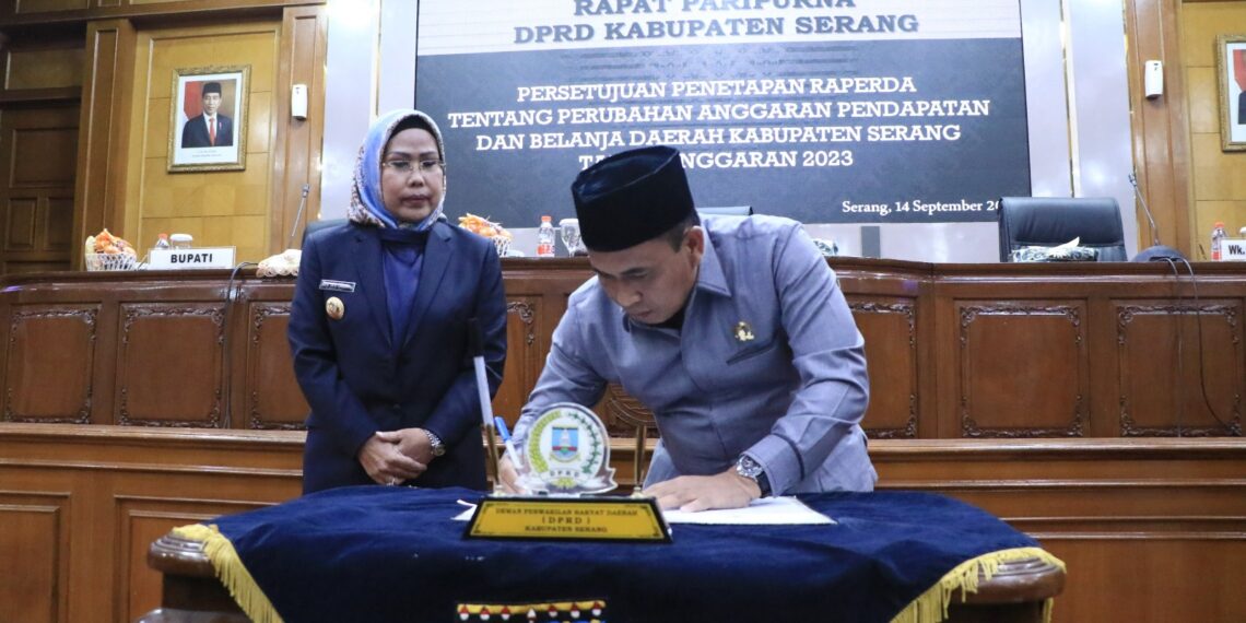BIGNEWS.ID – Dewan Perwakilan Rakyat Daerah (DPRD) Kabupaten Serang menyetujui dan menetapkan Rancangan Peraturan Daerah (Raperda) tentang Perubahan Anggaran Pendapatan dan Belanja Daerah (APBD) Kabupaten Serang Tahun 2023. Penetapan disetujui melalui Rapat Paripurna DPRD Kabupaten Serang di gedung dewan setempat pada Kamis, 14 September 2023.