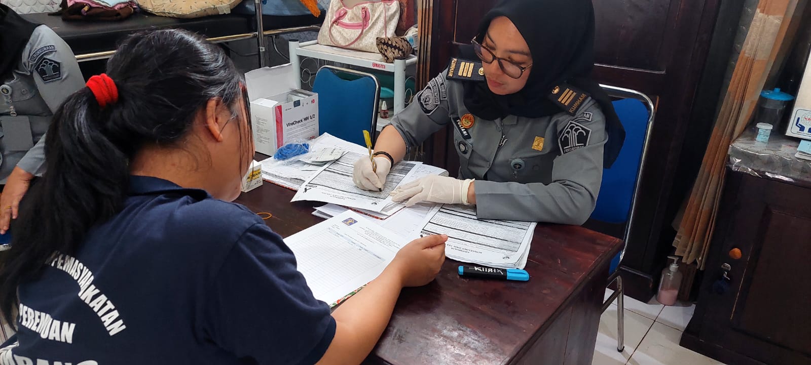 BIGNEWS.ID – Screening Hiv dilakukan kepada setiap warga binaan yang baru masuk ke Lapas Perempuan Kelas IIA Palembang baik yang berasal dari operan antar Rutan/Lapas lain maupun Operan Tahanan dari Polda/Kejaksaan. Hal ini dilakukan untuk screening dan Pencegahan penularan Human Immunodeficiency Virus atau lebih dikenal HiV, Senin (08/01/2024).