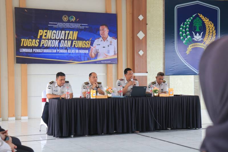 BIGNEWS.ID – Lembaga Pemasyarakatan (Lapas) Pemuda Kelas IIA Madiun menggelar Rapat Dinas yang diikuti oleh seluruh pegawai, bertempat di Aula Sujatno. Kegiatan ini dipimpin langsung oleh Kepala Lapas Pemuda Madiun, Rudi Kristiawan, sebagai upaya memperkuat koordinasi, menyatukan visi dan misi, serta meningkatkan kinerja organisasi. (22/04).
