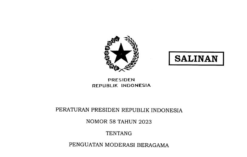 Read more: https://setkab.go.id/presiden-jokowi-terbitkan-perpres-58-2023-tentang-penguatan-moderasi-beragama/