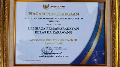 BIGNEWS.ID – Lapas Karawang meraih penghargaan Penilaian Maladministrasi Penyelenggaraan Pelayanan Publik Tahun 2025 dari Ombudsman…